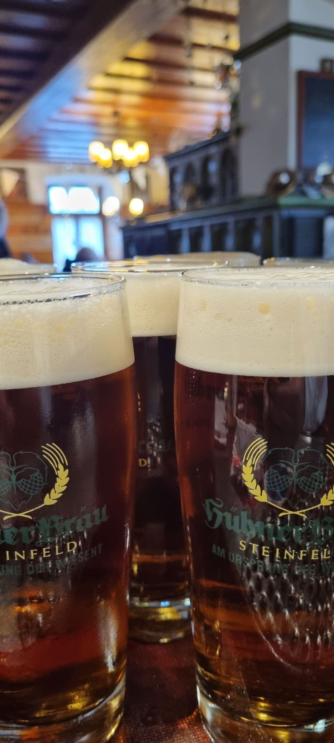 Unser Menü wird durch passend abgestimmte Bierspezialitäten der Brauerei Hübner Steinfeld, St. Georgen Bräu Buttenheim und der Brauerei Reh begleitet.
