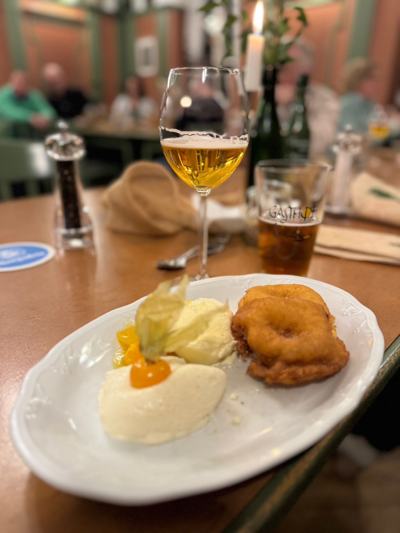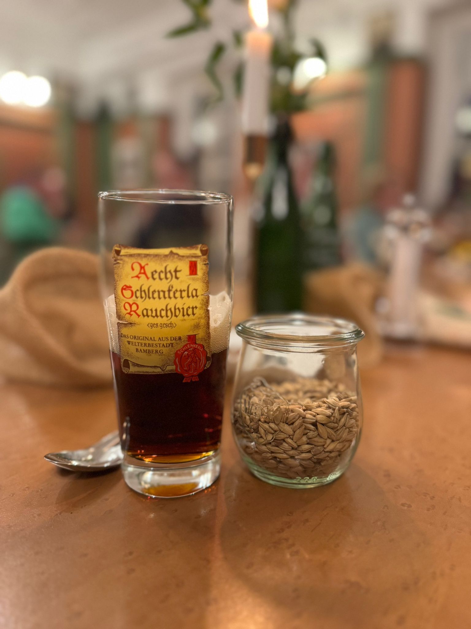 Unser Menü wird durch passend abgestimmte Bierspezialitäten begleitet wie z.B. Brauerei Hübner aus Steinfeld, St. Georgen Bräu Buttenheim und Aecht Schlenkerla Bamberg.