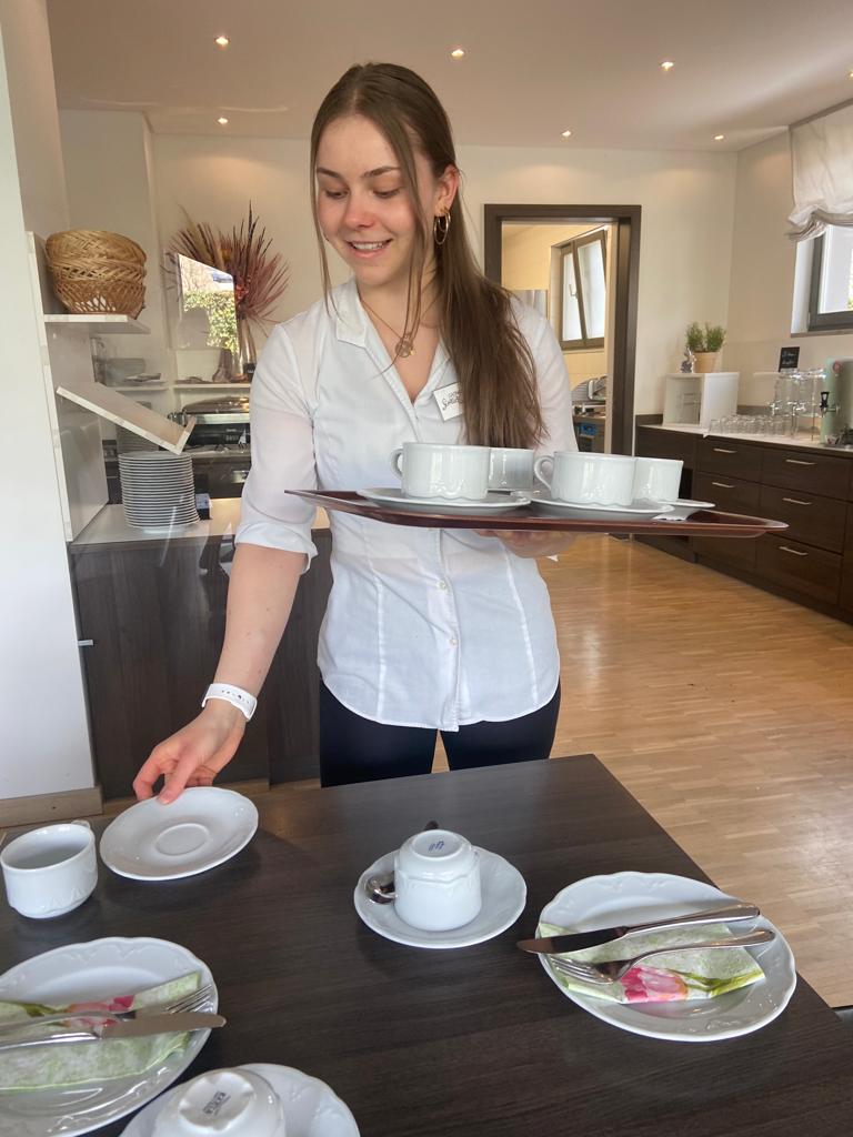 Arbeitszeit: 5.45 bis 14.00h und jedes zweite Wochenende, vorwiegend für Frühstückservice, Checkout, Reservierungen, Mittagservice in unserem Gasthof